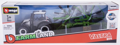 Traktor VALTRA N174 Z ZGRABIARKĄ KARUZELOWĄ firmy Bburago został wykonany z najwyższej jakości tworzywa sztucznego i metalu z bardzo ogromną dbałością o szczegóły i detale, aby wiernie odwzorowując prawdziwą maszynę rolniczą, zapewniając frajdę podczas wspaniałej zabawy.