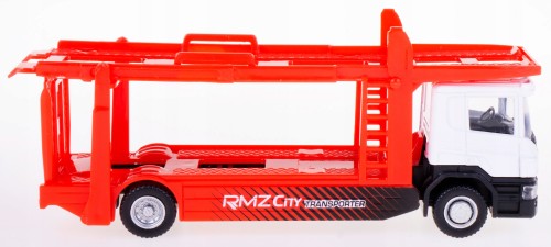 Auto transporter posiada opuszczaną rampę oraz miejsce na trzy ulubione resoraki.