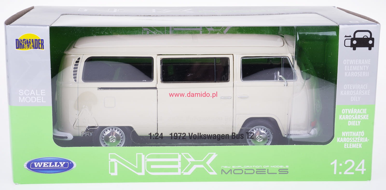 Model VOLKSWAGEN T2 BUS 1972 wykonany jest w skali 1:24 firmy WELLY. Modele charakteryzują się znakomitą jakością i wiernością wykonania.