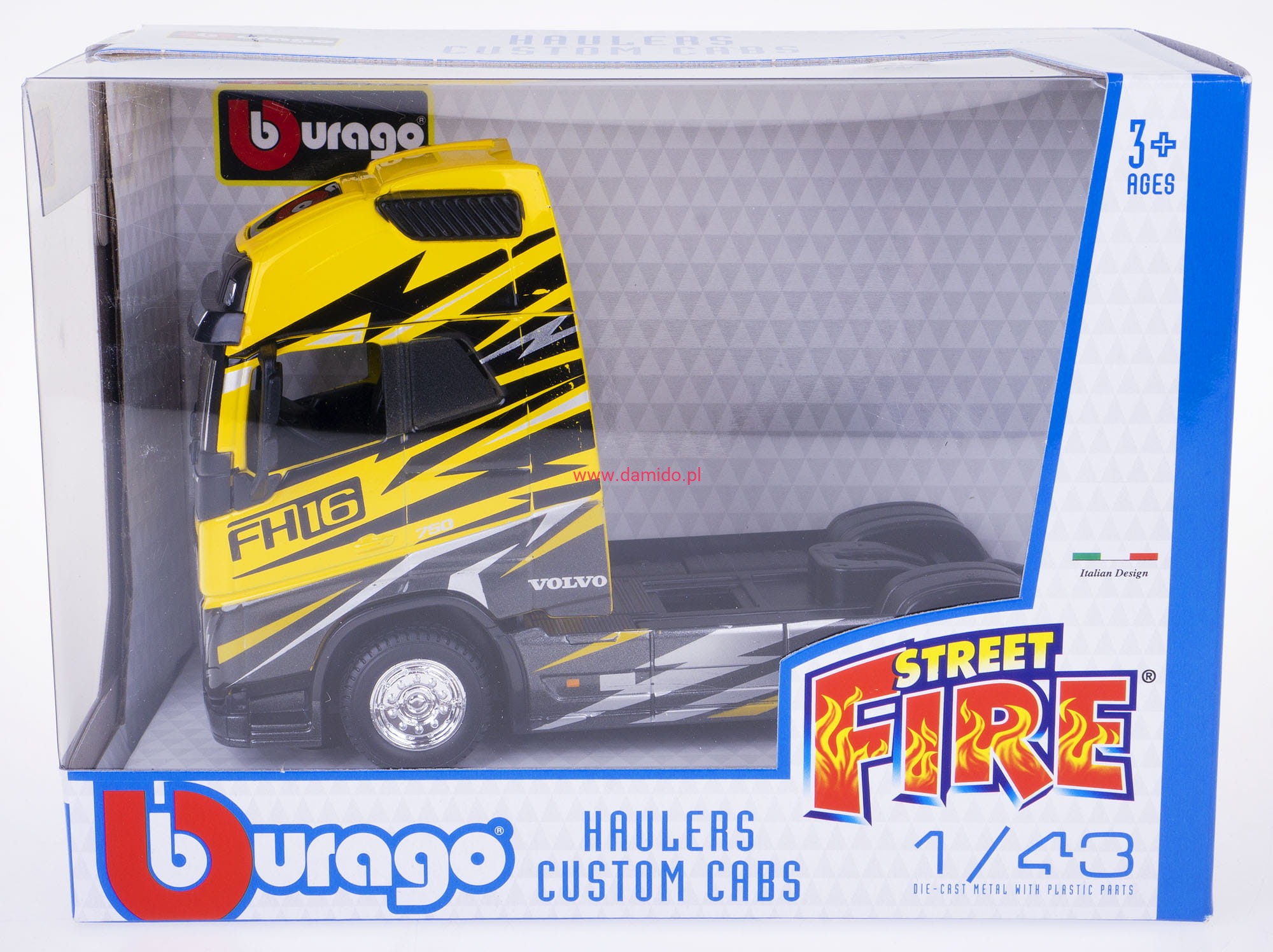 VOLVO FH16 750 CIĄGNIK TIR METAL 1:43 BBURAGO ŻÓŁTY