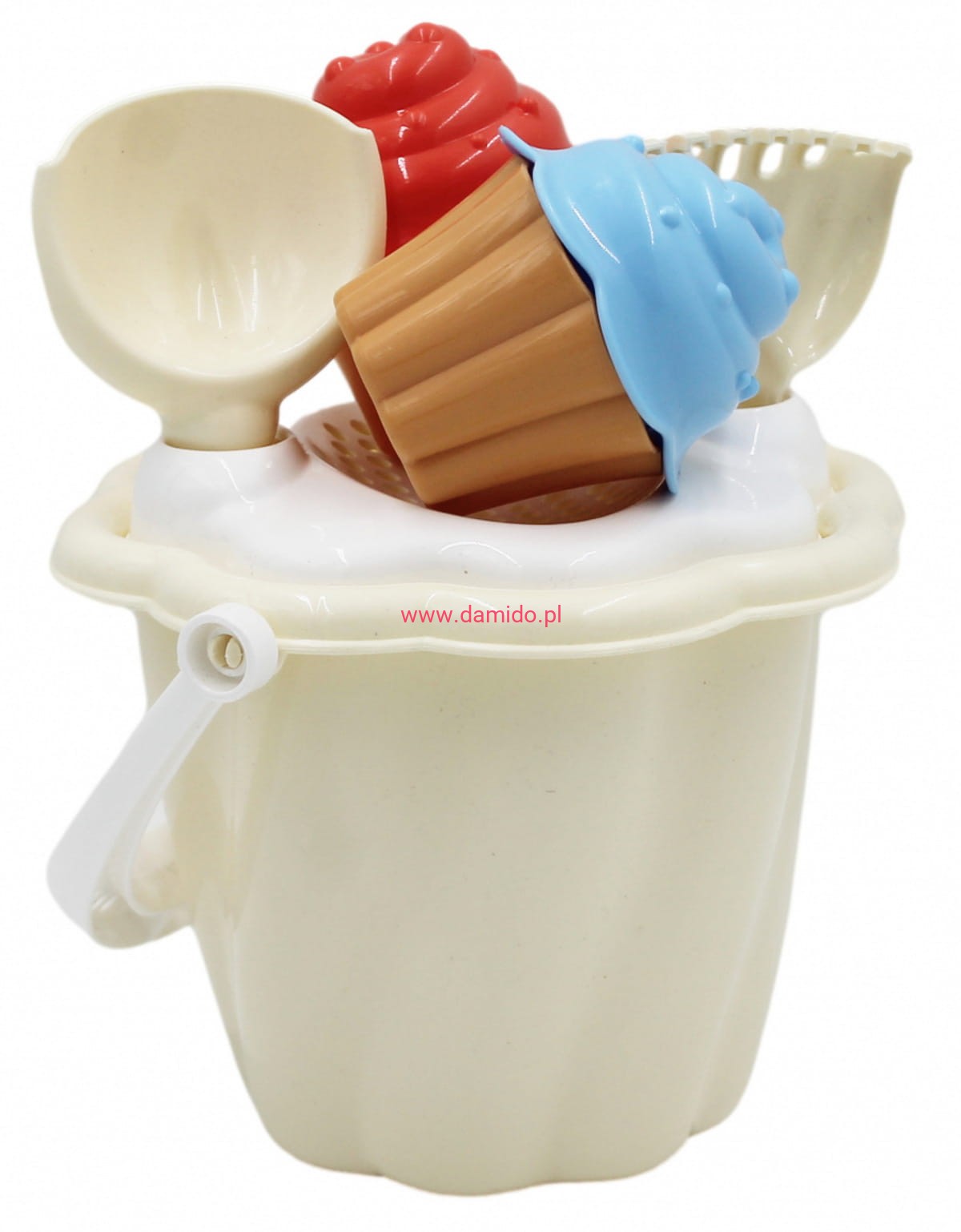 ZESTAW DO PIASKU WIADERKO DO PIASKU FOREMKI BABECZKI ŁOPATKA GRABKI ŚMIETANKOWY 5446